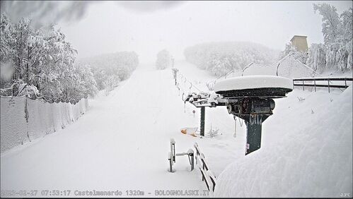 Questa mattina fiocchi di neve anche in Lombardia sulle Prealpi bergamasche a partire dai 200/300m. Spostandoci sugli Appennini, a Bolognola Ski (stazione sciistica delle Marche) sono fioccati 30 cm di neve e tra domani e mercoledì ne sono previsti altri 30 -40 cm.