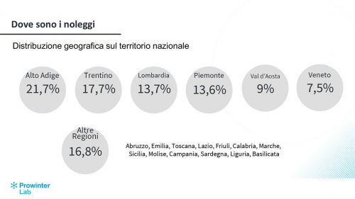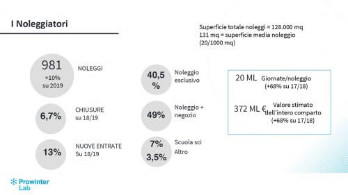 Sono 981 i noleggi “censiti” da Prowinter Lab, numero che comprende tutte le strutture di rental, anche quelle che non affittano esclusivamente attrezzatura per discipline invernali.