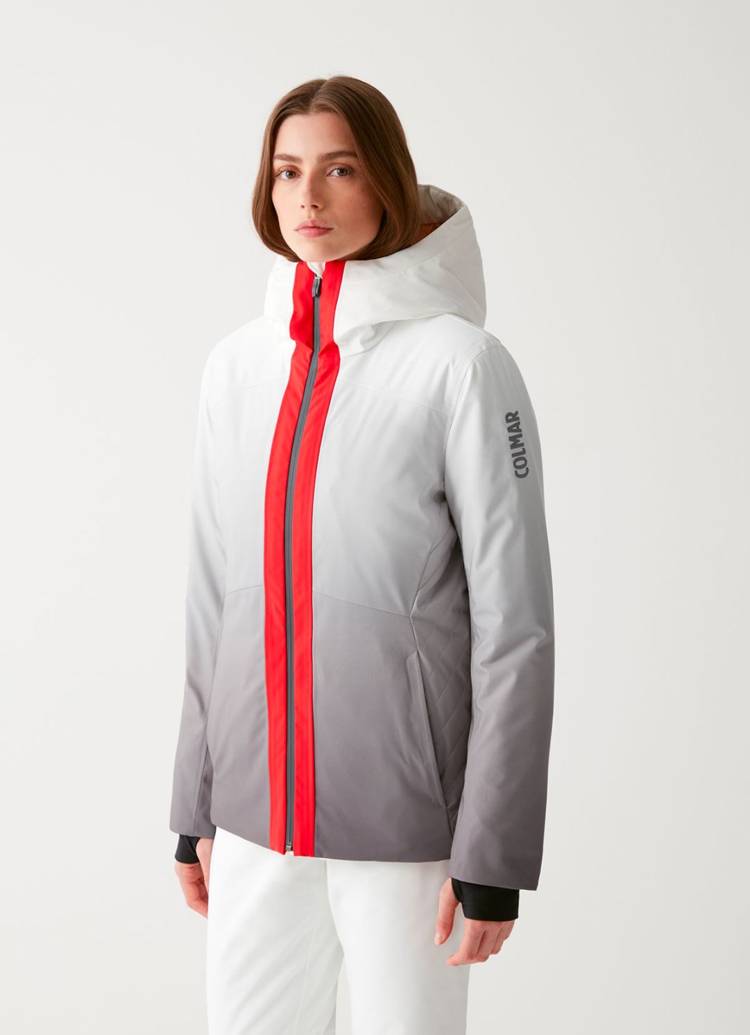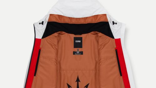 La giacca da sci della linea FUORISERIE CORSE è dedicata agli amanti dello stile senza tempo e dei colori tradizionali abbinati a finiture moderne. Giacca da uomo con cappuccio fisso in tessuto stretch 100% riciclato, impermeabile (15.000mm) e traspirante (15.000 gr/m2/24). A renderla preziosa ed unica è la stampa sfumata con inserti verticali di colore rosso intenso, che richiamano le auto da corsa firmate Maserati. Ricami in tono, zip impermeabili, coupevent stretch e una preziosa fodera stampata con maxi tridente Maserati. Calda e confortevole è imbottita con ovatta da 140 gr composta dall'85% di fibre riciclate. Completa la giacca il finissaggio idrorepellente ecosostenibile Teflon EcoElite™, parte integrante del progetto Colmar Green Path per il rispetto dell’ambiente.
