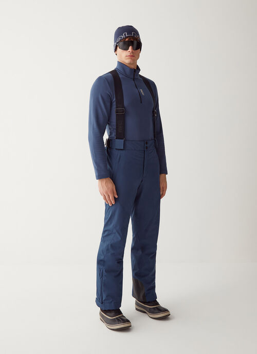 Salopette sci da uomo realizzata in tessuto bielastico riciclato laminato impermeabile (20.000 mm) e traspirante (20.000 gr/m2/24) ed imbottita in ovatta stretch Clomax® Flex4way. Parzialmente termosaldata. I tagli ergonomici di questo capo, permettono una vestibilità ottimale. Dotato di riflettore Recco® per la rintracciabilità in caso di valanga, è il capo ideale per affrontare le piste in totale sicurezza e confort. L’utilizzo di tessuto riciclato ed il trattamento idrorepellente ecosostenibile Teflon EcoElite™, fanno parte del progetto Colmar Green Path per il rispetto dell’ambiente.