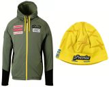 La felpa con zip e cappuccio color kakhi marchiata con i loghi e gli sponsor ufficiali della nazionale sci svedese (tra cui Audi e Bauhaus) è realizzata in tessuto Stretch Fleece Backside Brushed (in poliestere) per garantire comodità e calore in ogni situazione e momento del giorno. Con le cuciture rifinite in color giallo, si abbina perfettamente a qualsiasi altro capo della collezione, compresa la berretta Phenix Sweden Knit Cap, realizzata con un motivo a croce jacquard ispirato ai colori della bandiera svedese e la cui fodera è realizzata in pile altamente assorbente e ad asciugatura rapida per garantirne una vestibilità confortevole.