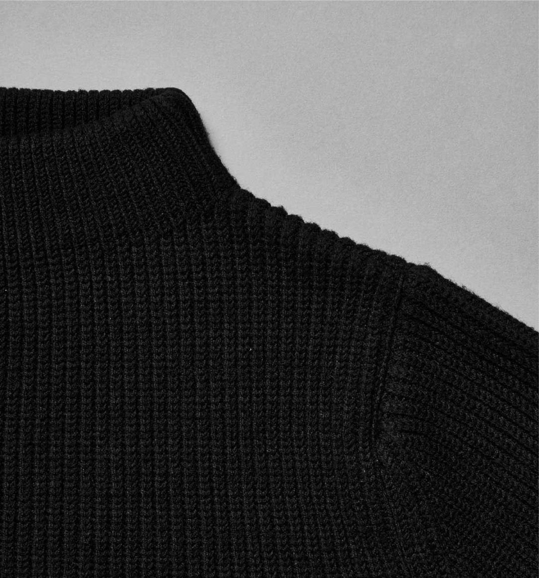 "The Sweater" è stato sviluppato chiedendosi "Qual era l'origine di questo prodotto iconico?" e "Che aspetto avrà in futuro?". E' nato combinando questi nuovi materiali innovativi con lana merino pregiata e cashmere di alta qualità e potrà essere il punto di partenza della ricerca di soluzioni ai problemi ambientali globali. Il colore del maglione, il nero, è stato scelto perché rappresenta la mescolanza di tutti i colori e si dice che sia il colore degli inizi. In questo modo, immaginiamo The Sweater come un collegamento tra l'inizio della lunga storia di questo elemento iconico e gli ultimi sviluppi tecnologici.