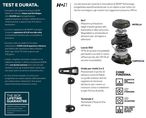 Ci sono istruzioni precise che forniamo ai marchi quando sviluppano modelli BOA® e dobbiamo approvare ogni progetto prima che vada sul mercato, non per insegnare ai brand il loro mestiere, ma per essere certi di poter offrire la garanzia a vita sul sistema BOA® su tutti gli scarponi di tutti i brand. Poi abbiamo indicazioni diverse in base alla tipologia di scarpone e l’utilizzo previsto.