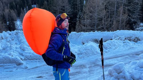 Andrea Ferrari, esperta Guida Alpina, ha gentilmente testato per noi uno degli zaini dotati di questa interessante tecnologia, Avabag LiTRIC Zero 27, durante alcune giornate di scialpinismo con dislivelli tra i 1200 e i 1600 metri. Lui stesso ha confermato le sensazioni di praticità e leggerezza che racchiudono questo piccolo gioiello dell’innovazione bavarese: lo zaino appare infatti molto pulito nella sua forma, pesa poco meno di 2 kg, ha una capienza base di 27 lt ed è composto da un grande scomparto principale dedicato alle attrezzature di autosoccorso e da una serie di caratteristiche indispensabili, come gli attacchi per sci e picozza. Uniche pecche estetiche, secondo Ferrari, sono l’assenza di una tasca interna divisa dal resto del compartimento principale e il materiale degli spallacci, in cordatura per ridurre il peso, che appare un po’ troppo sottile e privo di struttura.