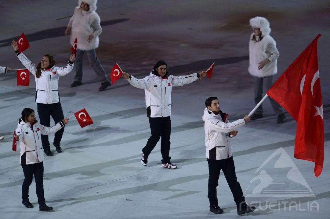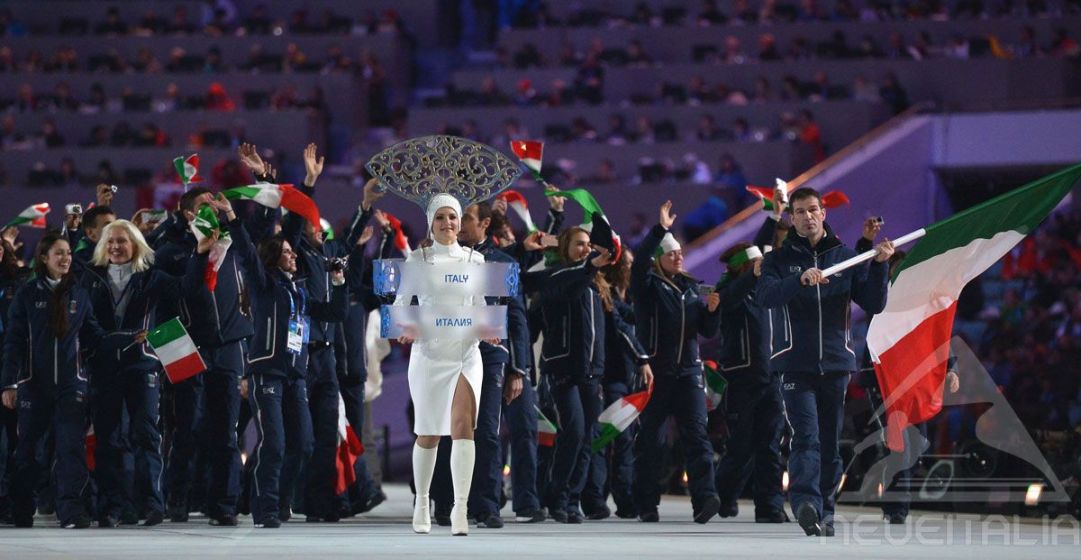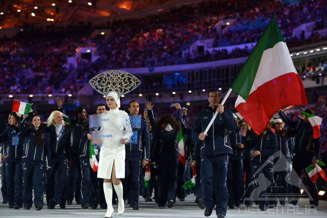 E’ la volta della sfilata delle 87 nazioni partecipanti, più 3 atleti indiani che gareggiano sotto la bandiera del CIO, la prima nazione in passerella è tradizionalmente la Grecia, l’ultima, altrettanto tradizionalmente, è la Russia padrona di casa. L’Italia è la trentaduesima a entrare nello stadio alle 20,49, le nostre 17,49, col nostro alfiere Armin Zöggeler, bella la coreografia dall’alto degli atleti che sfilano in mezzo all’immagine del proprio paese come fosse dal satellite. Arrivano le mascotte dei Giochi, un leopardo sullo snowboard, un orsetto sui pattini e un coniglietto sugli sci.