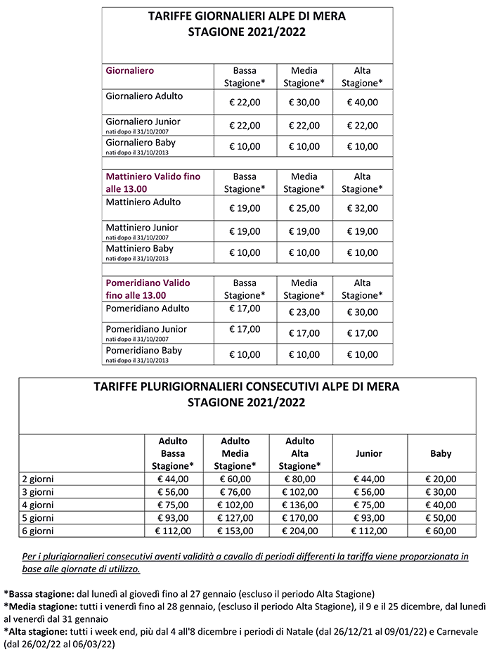 Skipass Alpe di Mera 2021/2022