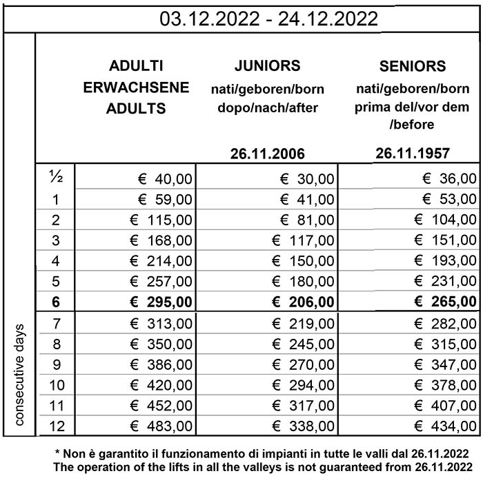 Skipass Stagione Normale Alpe di Siusi 2022/2023