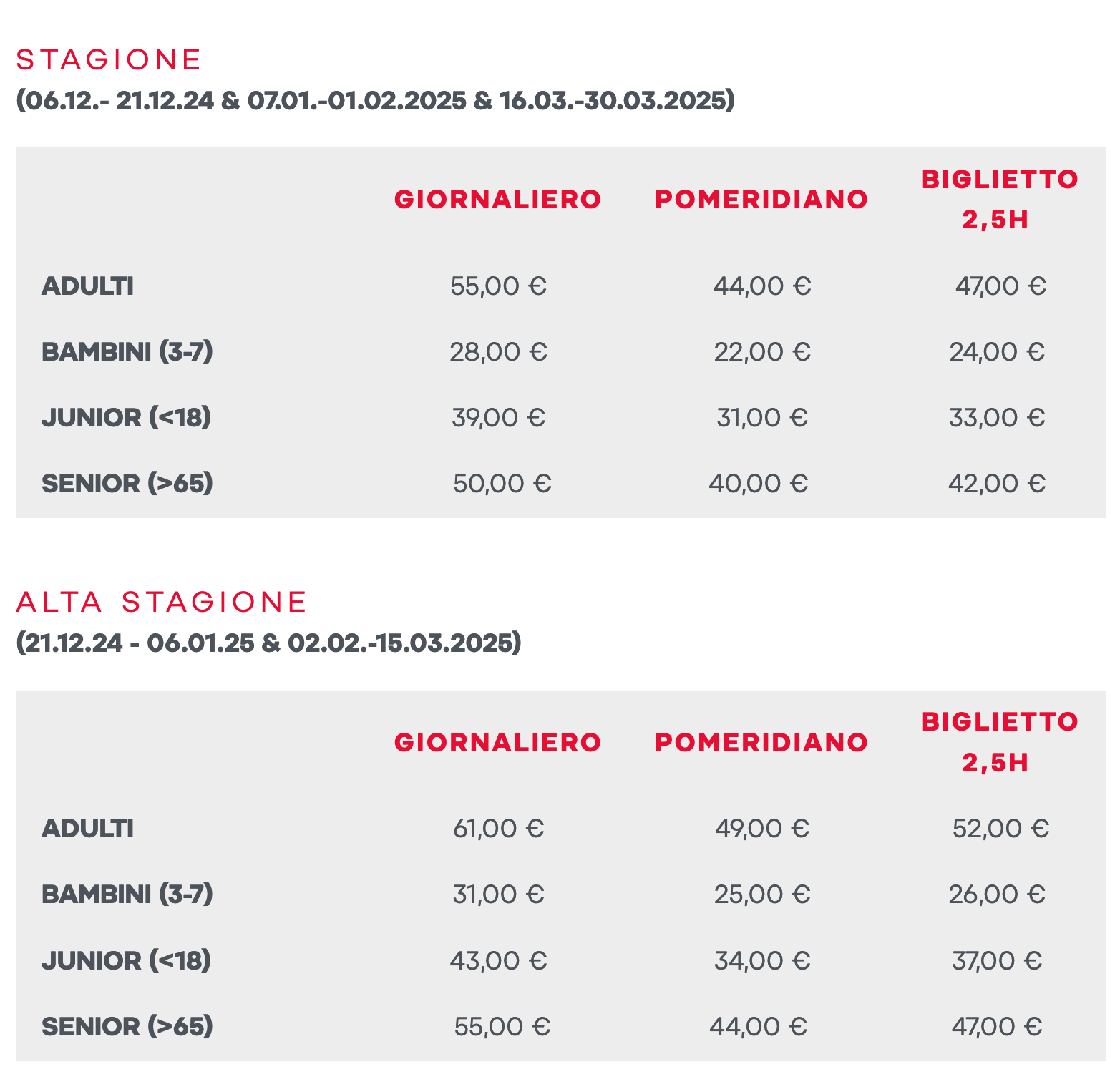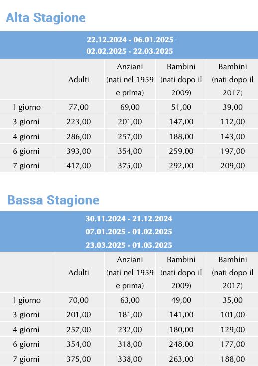 Prezzi Skipass