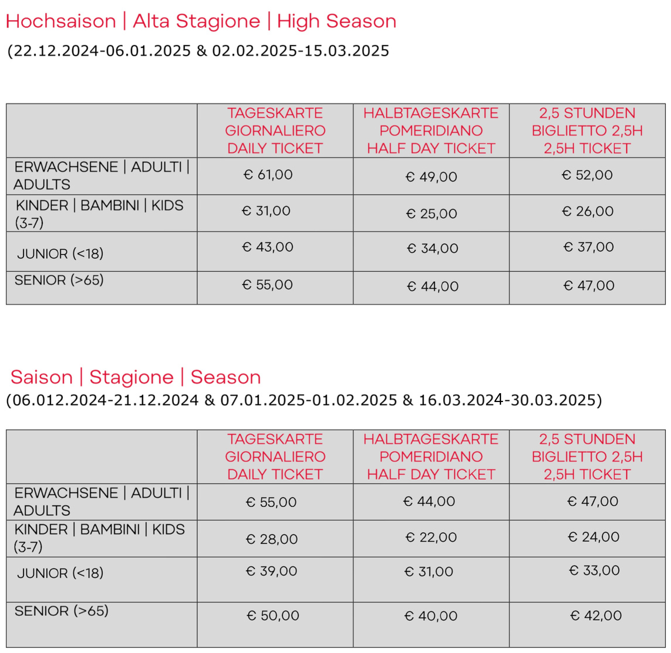 Skipass Skiarea Tre Cime Dolomiti 2024/2025