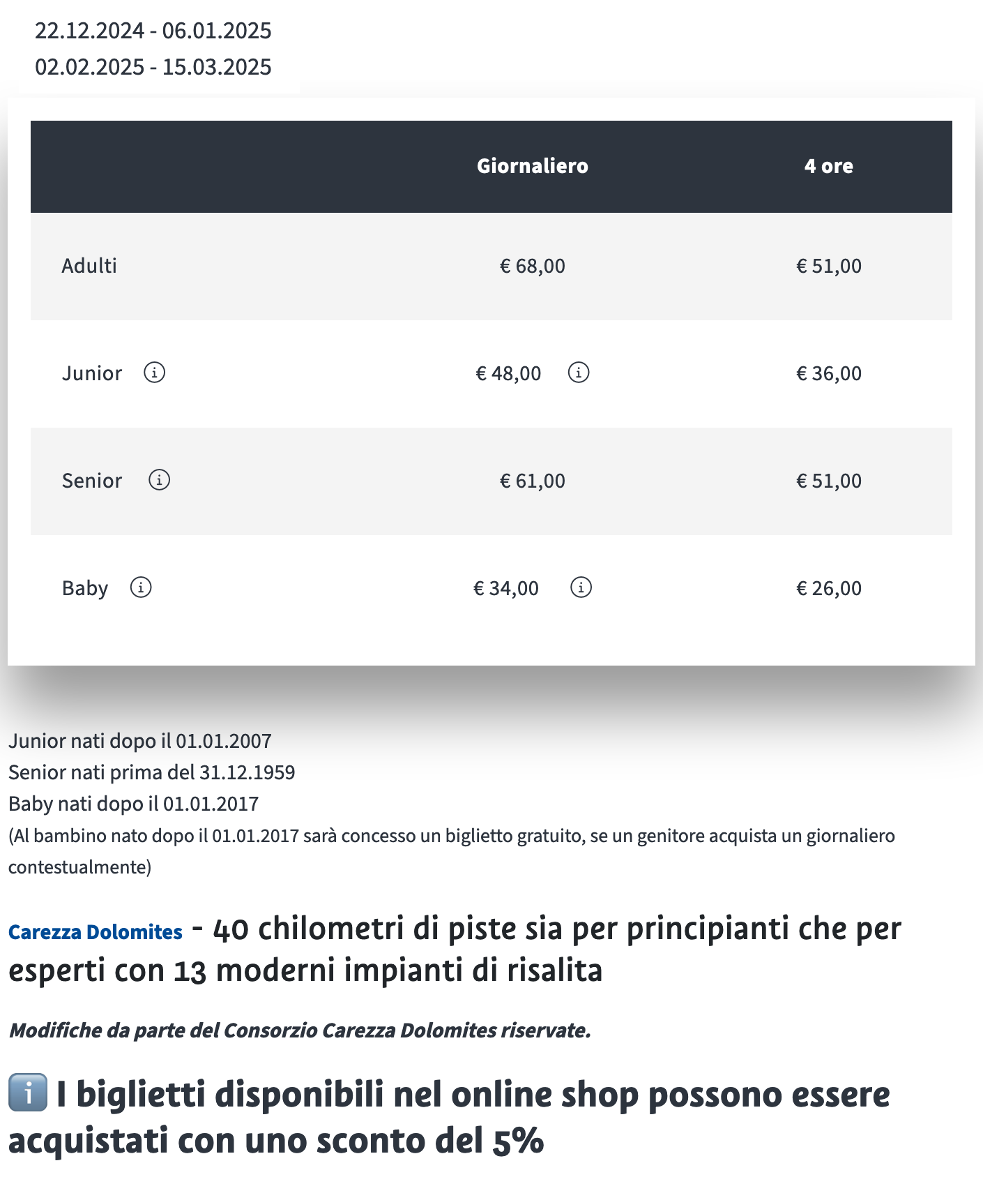 Skipass Carezza Stagione 2024/2025