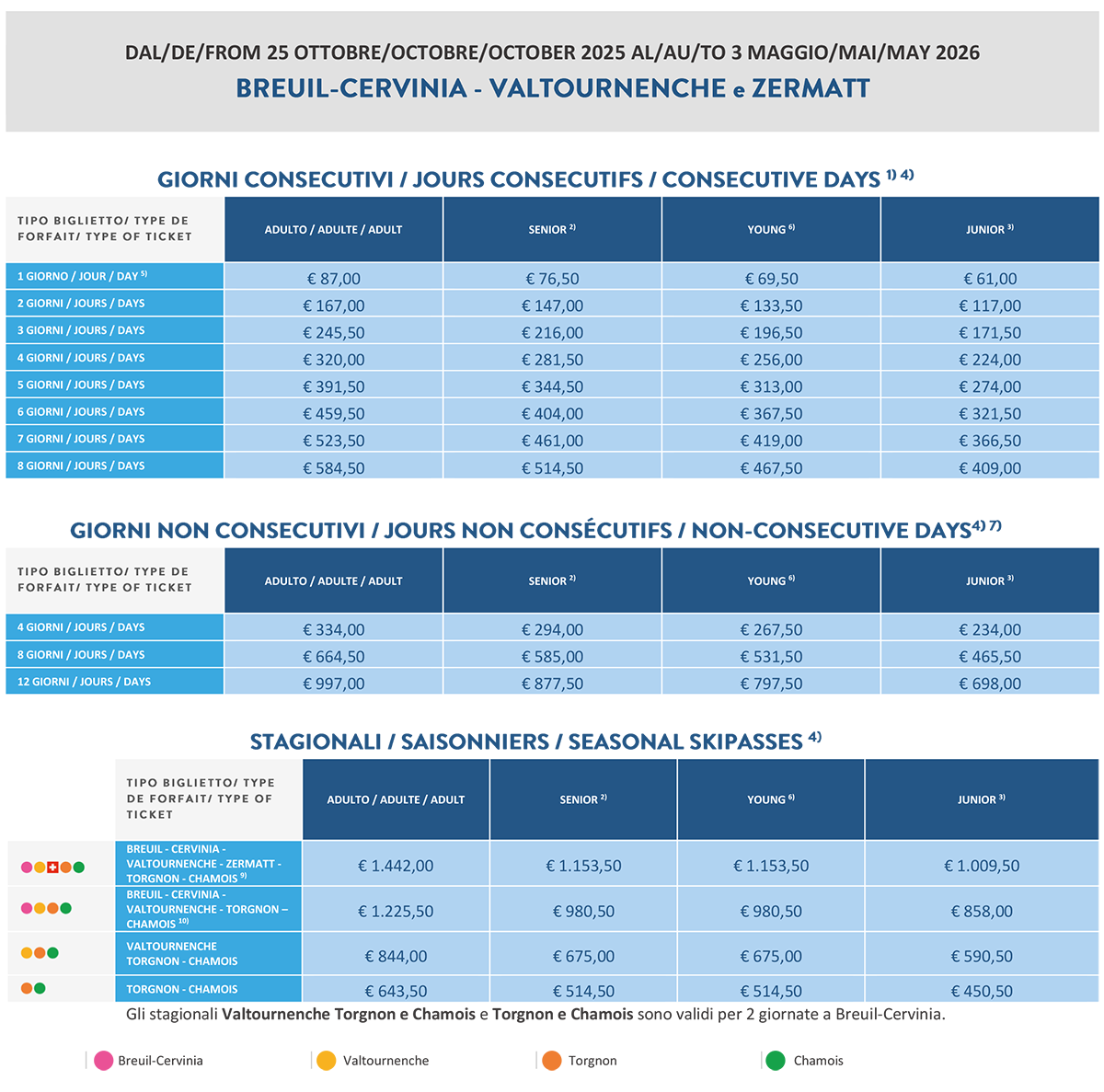 Skipass Cervinia Zermatt Valtournenche 2025/2026