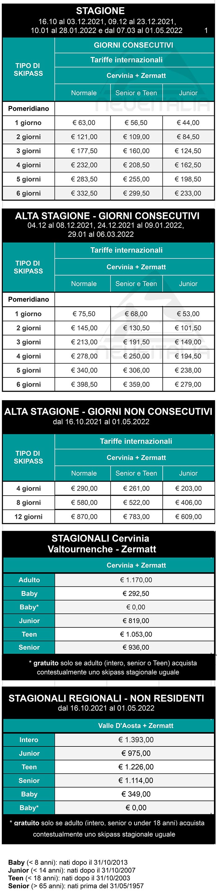 Skipass Cervinia Valtournenche Zermatt 2021/2022