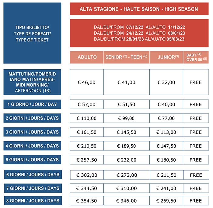 Skipass Cervinia Valtournenche Alta Stagione 2022/2023
