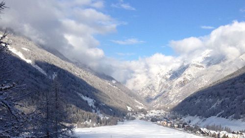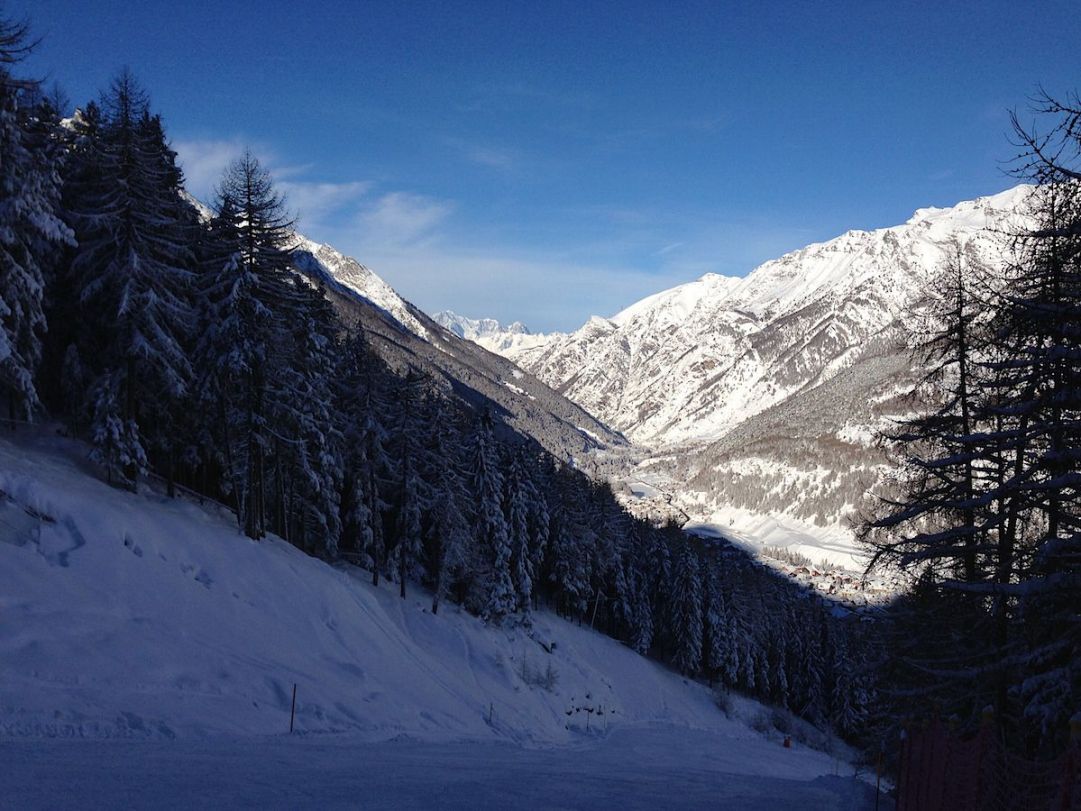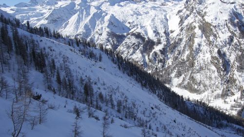 Montate le pelli si inizia il traverso a destra prestando la massima attenzione e cercando di mantenere sempre la quota di partenza. Dopo alcuni passaggi tra alberi e rocce si giunge al colletto che gira intorno al Montseuc 2.328 metri, la vetta che dà anche il nome alla telecabina: qui la vista è notevole e spazia sulla catena del Gran Paradiso 4.061metri.