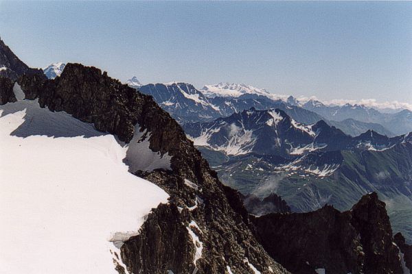 Cervino e Monte Rosa da Punta Helbronner Dalla punta Helbronner si vedono, in lontananza, a oltre 30 km di distanza, l'inconfondibile cima del Cervino e il massiccio del Monte Rosa