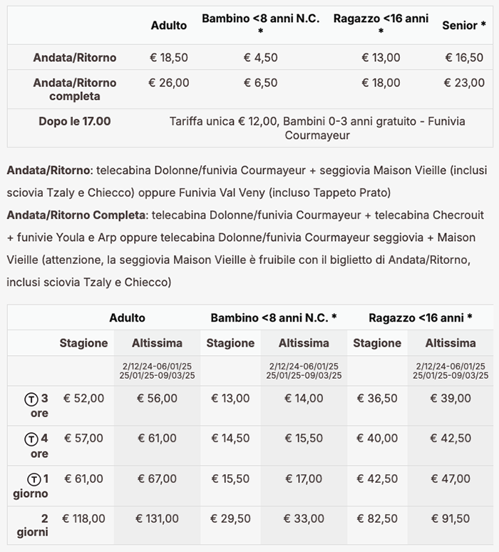 Skipass Courmayeur Mont-Blanc 2024/2025