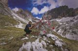 raggiunta la conca di Gardeccia dal Ciampedìe (in funivia da Vigo di Fassa) o da Pozza di Fassa con i taxi (il punto di partenza si trova presso il parcheggio della seggiovia Vajolet 1 a Pera di Fassa), si prosegue sulla larga mulattiera (segnavia n. 546) che porta ai rifugi Preuss e Vajolet. Si risale (segnavia n. 584) con costante ascesa il fianco destro dell’alta valle del Vajolet, alla cui testata si fa sempre più imponente la massiccia mole del Catinaccio d’Antermoia, m 3.002. Con erta serpentina finale si esce al rifugio Passo Principe a m 2.600 (ore 2 di cammino).
