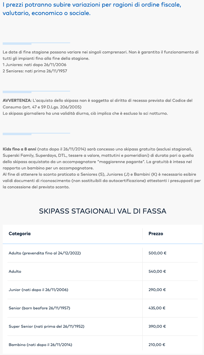 Skipass Stagione Val di Fassa 2022/2023