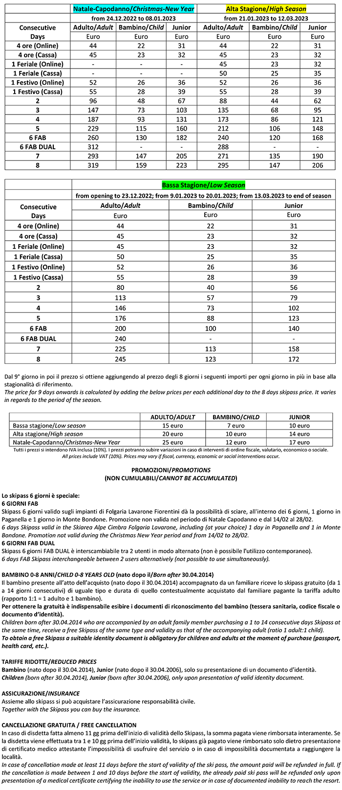 Skipass Folgaria Lavarone Fiorentini 2022/2023