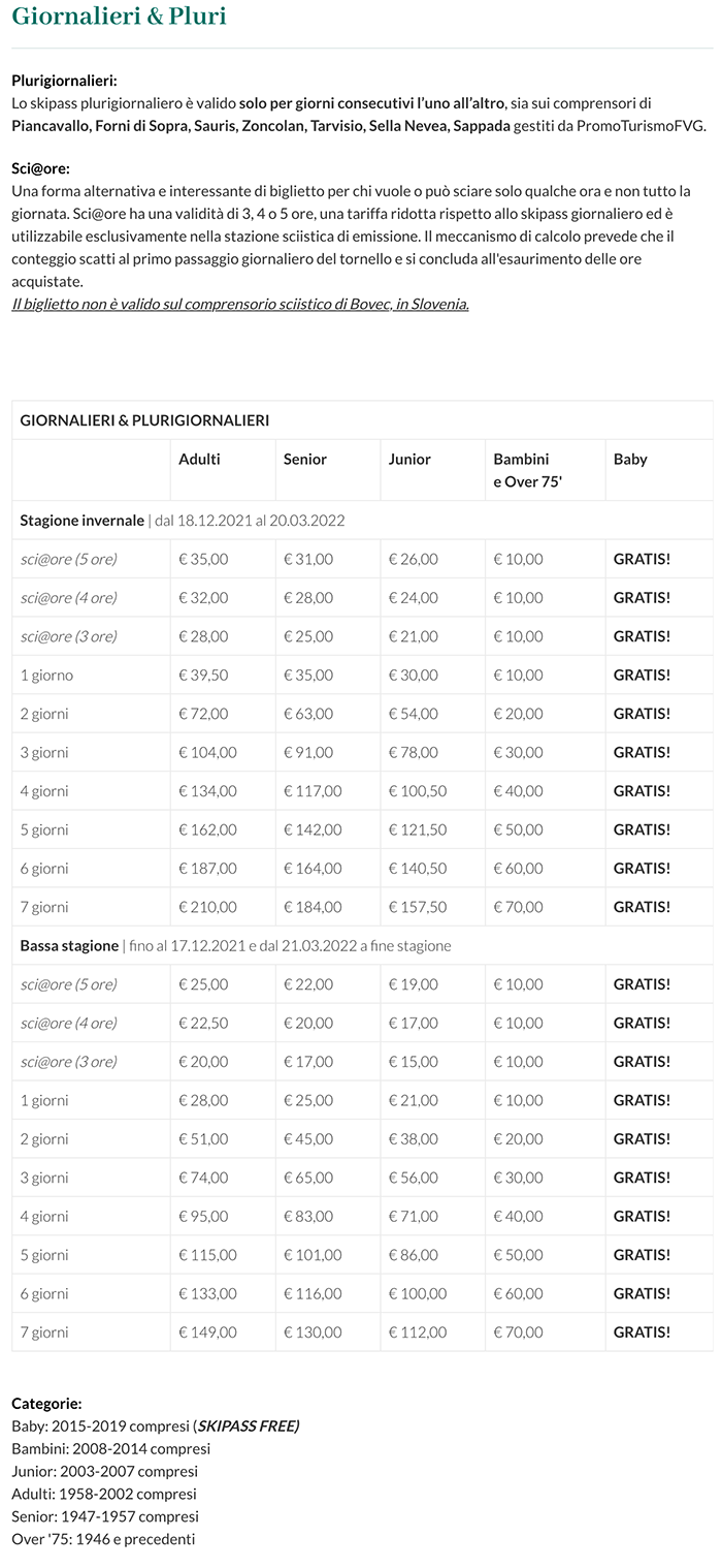 - Prezzi Skipass Forni di Sopra