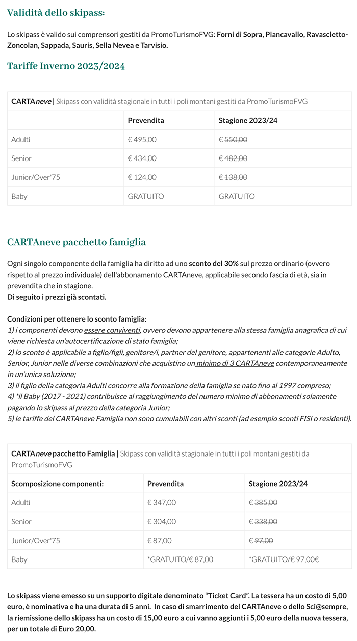 Prezzi Skipass Forni di Sopra 2023/2024