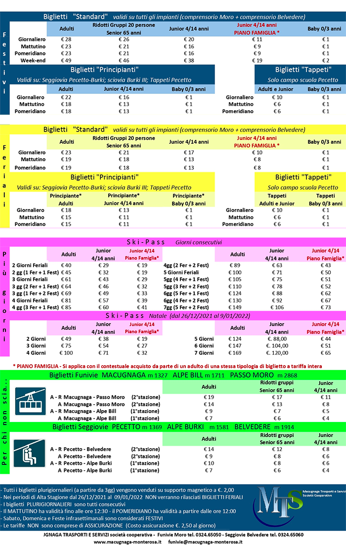 Skipass Macugnaga Belvedere Monte Moro 2021/2022