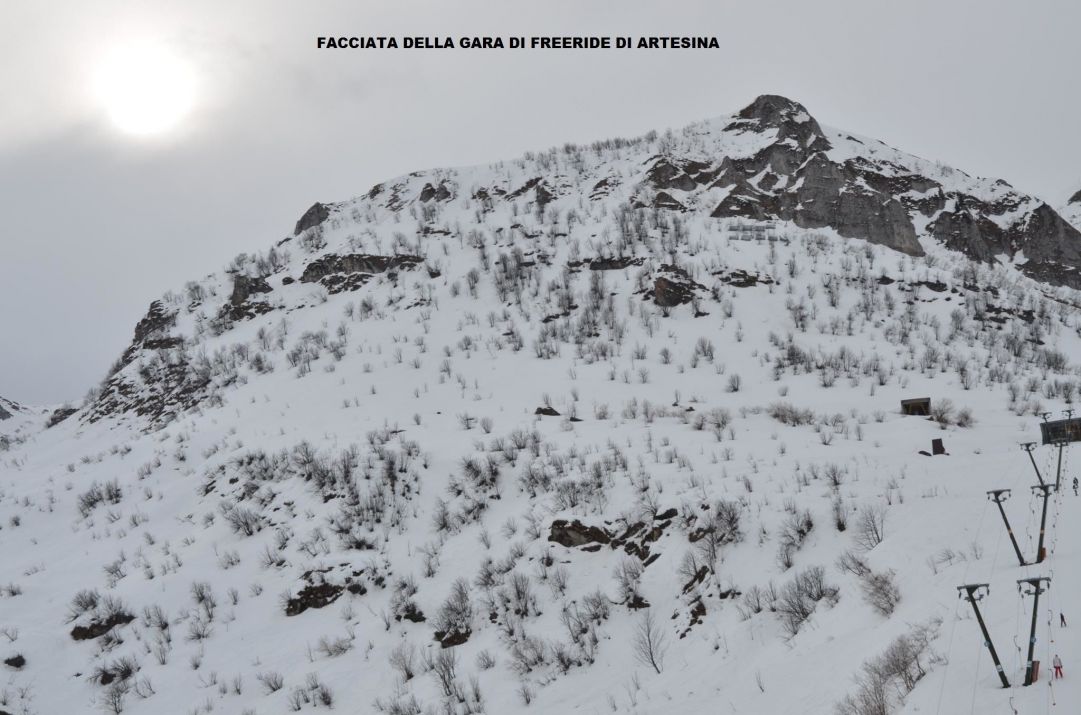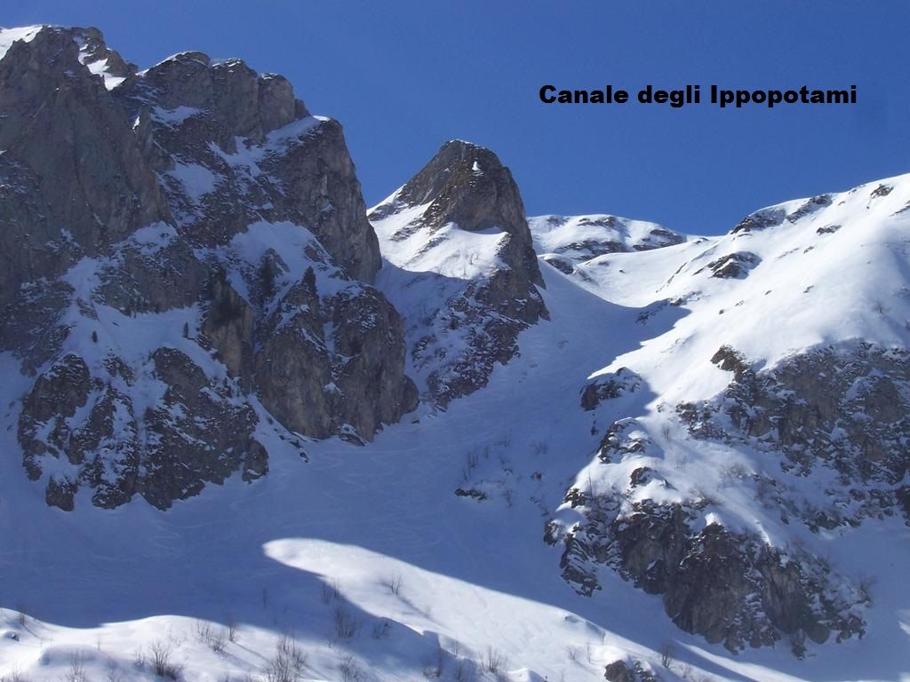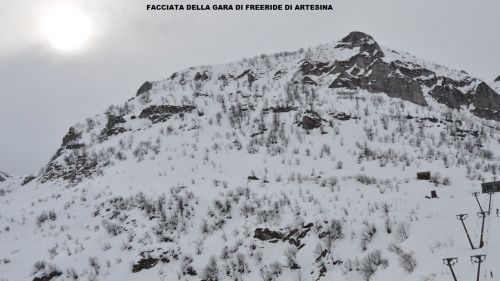 Arrivati circa alla metà del cammino e dove finisce il pezzo battuto dal gatto delle nevi ci troviamo nei pressi della Balcunera, da qui possiamo scendere sul pendio a nord della gara di Freeride di Artesina o discendere i verticali canalini che danno sul Lago delle Scalette o proseguire verso la cima.