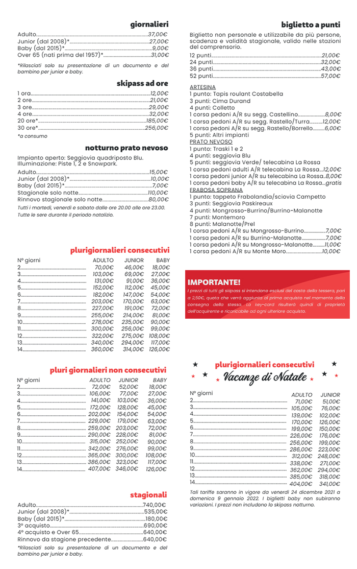 Skipass Artesina, Prato Nevoso, Frabosa, Mondolè Ski 2021/2022
