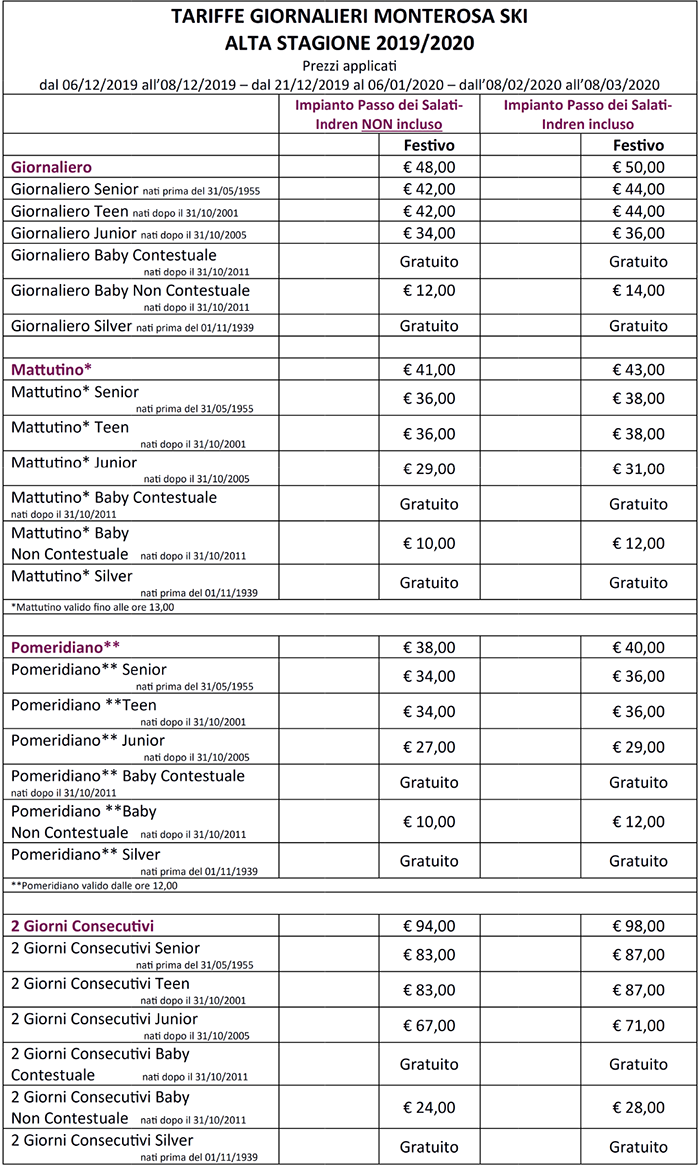 Skipass Giornalieri Monterosa-Ski 2019_2020
