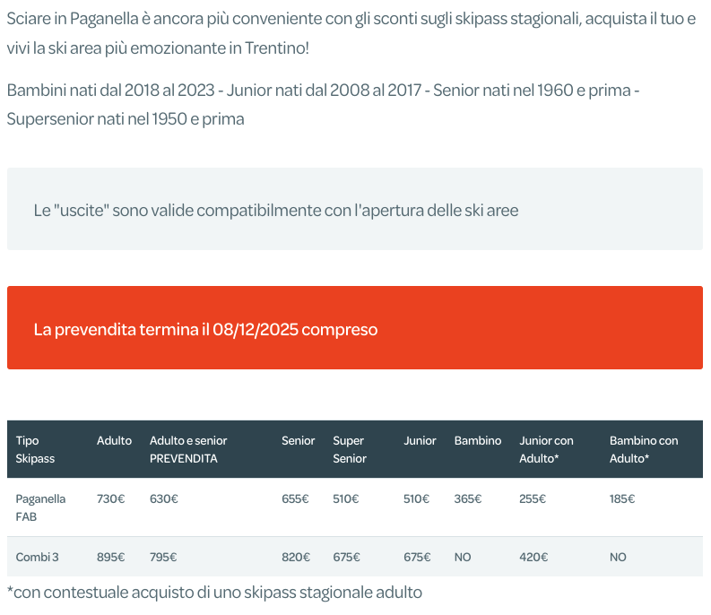 Skipass Stagionale Paganella 2025/2026