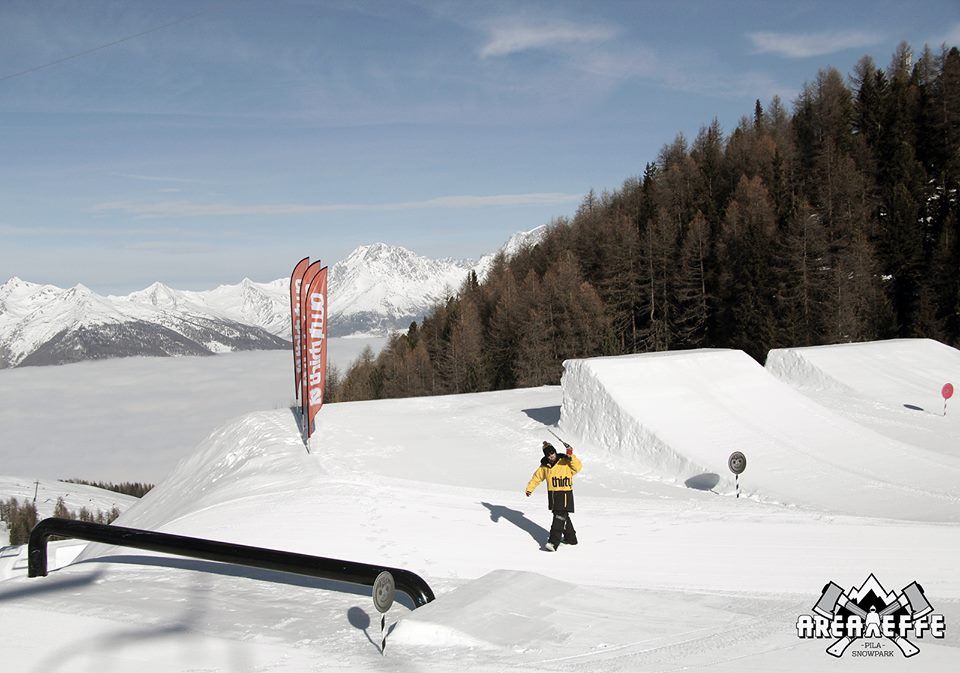 Lo scorso weekend si è svolto a Pila la tappa del Braulio Vertical Tour, del resto è uno snowpark molto noto in Valle d'Aosta. E' uno snowpark pensato per il divertimento e l'apprendimento del freestyle. Sia gli snowboarder che gli skier potranno trovare la massima sicurezza in questo park, per arrivare ad avere un livello di riding sempre più completo. Lo snowpark è raggiungibile direttamente da Aosta tramite la telecabina per arrivare a Pila quindi in circa 30 minuti si può essere con la tavola ai piedi o gli ski per iniziare a girare in park. A un altezza di circa 2200 metri s.l.m il park si sviluppa per 700 metri, servito da una seggiovia quadriposto "Grand Grimod" e circondato dalle Alpi Valdostane. Curata maniacalmente, shapata e fresata ogni mattina per la gioia di snowboarders e freestyle skier, l'AREAEFFE si sviluppa in un'area di circa 20.000 mq che accoglie strutture di tutti i livelli, dai principianti ai più esperti ed esigenti.Una zona facile, interamente dedicata a chi è alle prime armi, permette un'approccio in sicurezza al mondo del freestyle: funbox in sequenza, railbox e qualche elemento da jibbare accontentano i neofiti del mondo freestyle. Kicker, funbox, spine e rail di tutti i tipi "riempiono", invece, le linee intermedia ed esperti composte da 5 table in sequenza sui quali gli shaper piazzano, variando più volte durante il scorso dell'inverno, la sistemazione di strutture in neve e ferro adattandole alle condizioni della neve e al periodo della stagione.