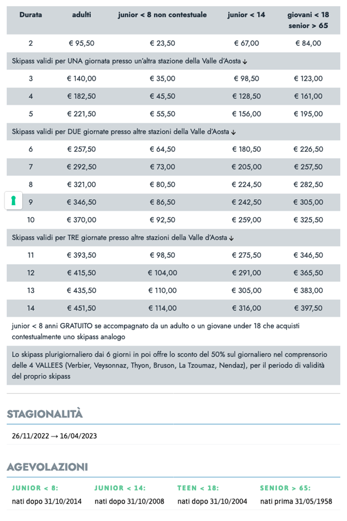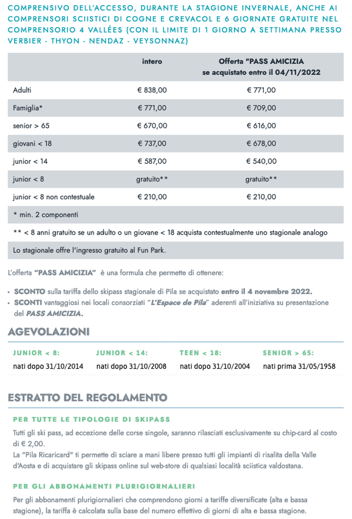 Skipass stagionale Pila 2022/2023