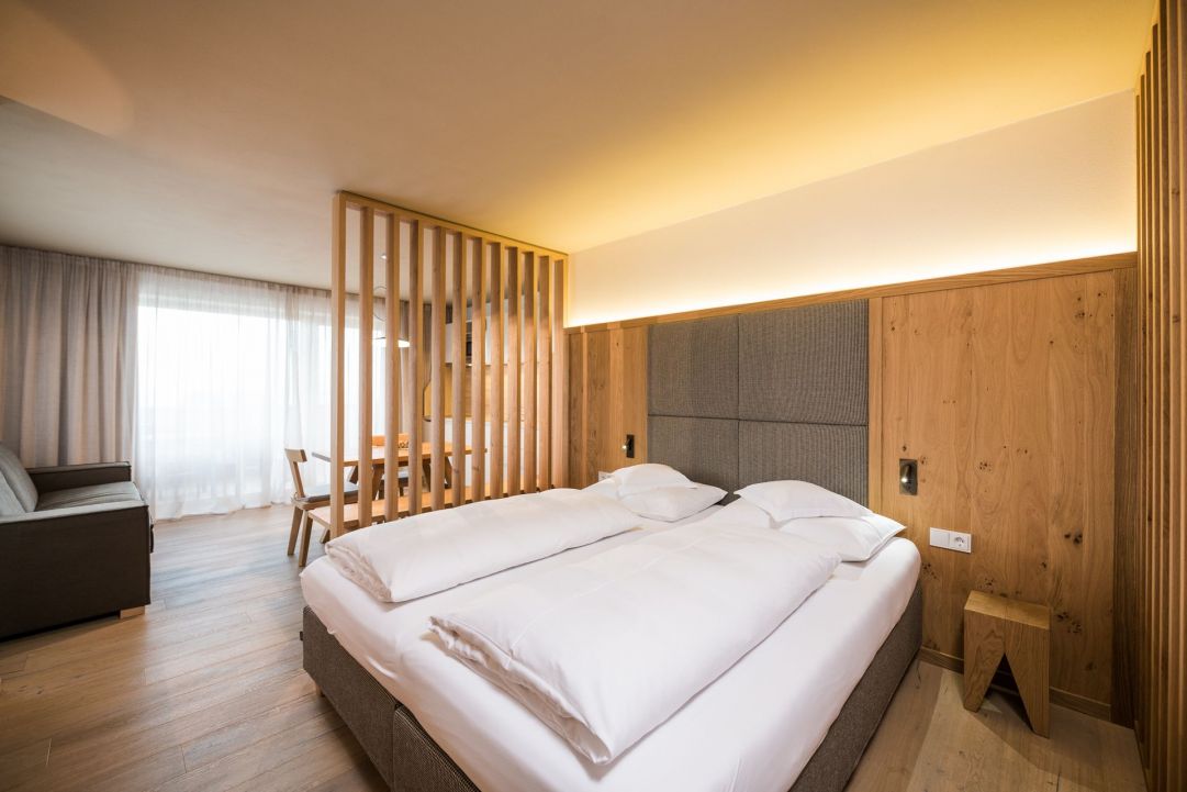 Ogni alloggio, infatti, dispone di piano cottura in vetroceramica, frigorifero, lavastoviglie, forno a microonde, macchina per il caffè Nespresso, TV satellitare, cassaforte, collegamento Internet gratuito, una cabina a raggi infrarossi e di un garage coperto per l’auto. Tutti con vista sul Parco Naturale Fanes – Senes – Braies, patrimonio dell’Unesco.