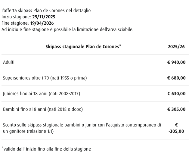 Skipass Stagione Plan de Corones Kronplatz 2025/2026