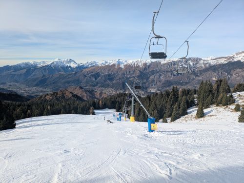 La seggiovia serve la pista facile Boschetto e alcune piste di media difficoltà, tra cui la Pian del Termen, dotata di impianto di illuminazione.