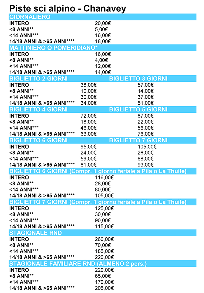 | Breuil-Cervinia | 5/15 | 10-40 cm |