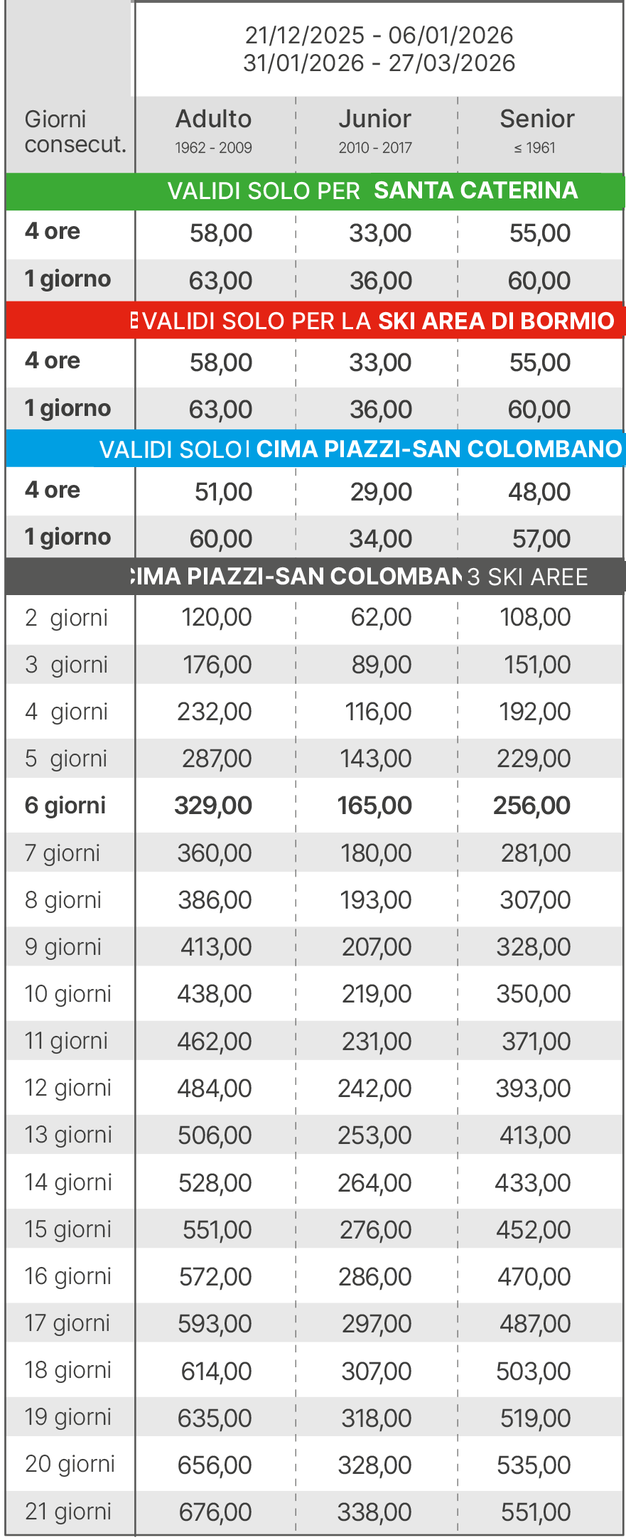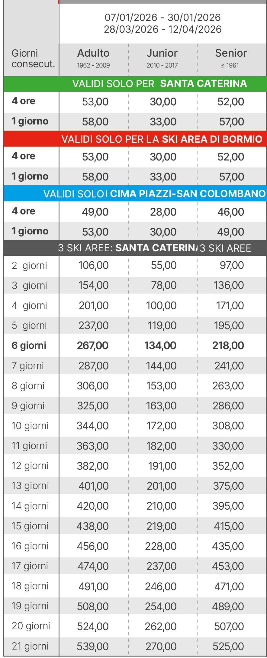 Skipass Alta Stagione Santa Caterina 2025/2026