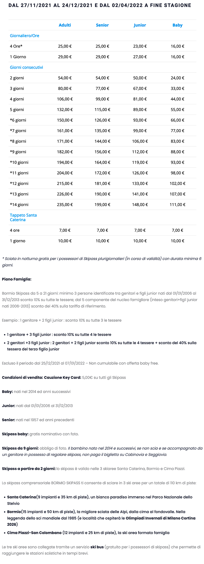 Skipass Bassa Stagione 2021/2022