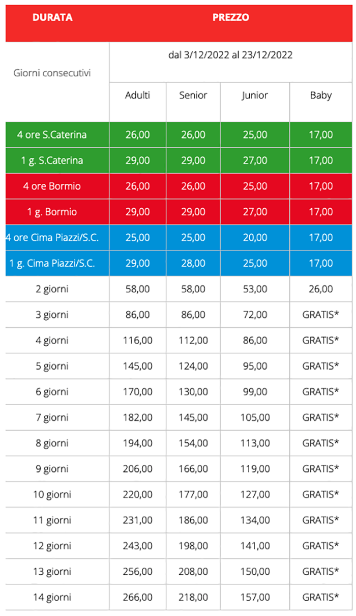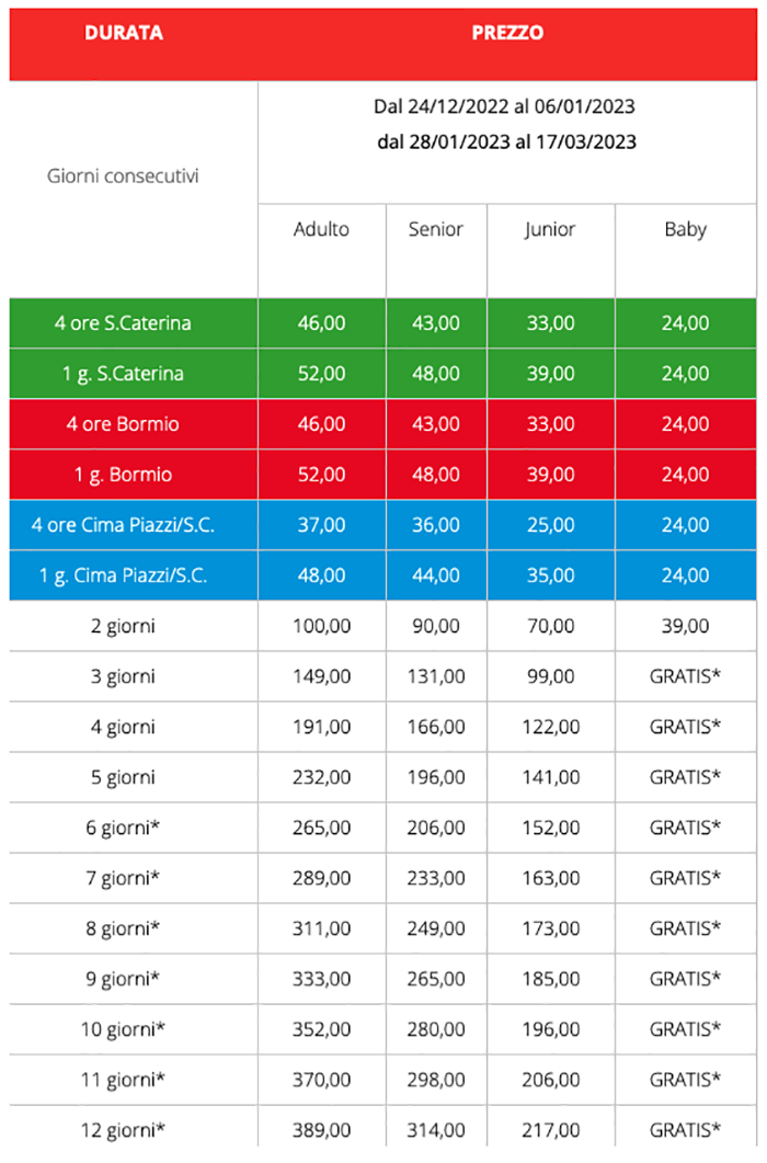 Skipass Bassa Stagione Bormio Santa Caterina 2022/2023