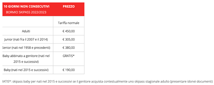Skipass 10gg non consecutivi Bormio Santa Caterina 2022/2023