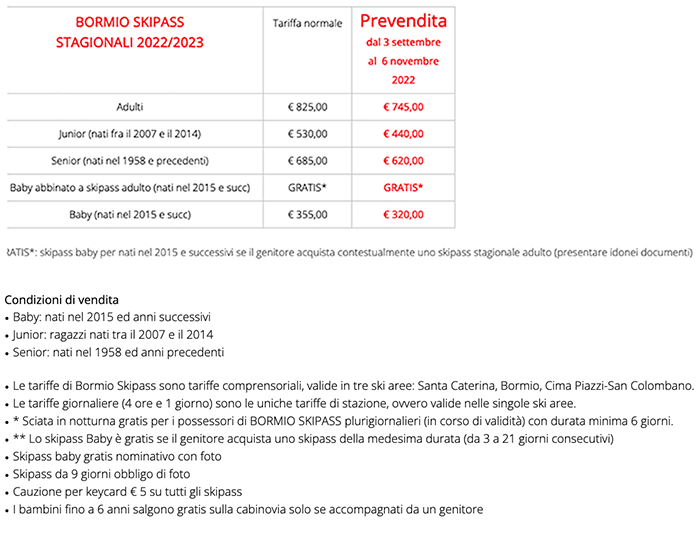 Skipass Stagionali Bormio Santa Caterina 2022/2023
