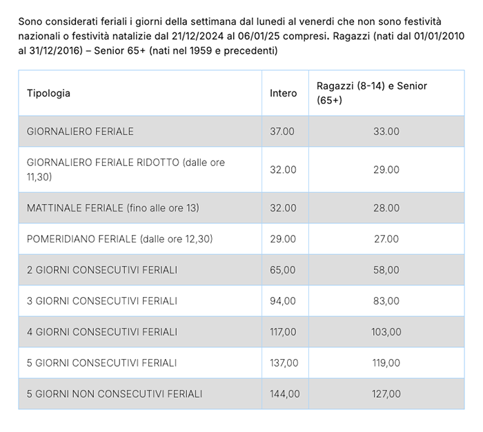 Skipass Cimone FERIALI 2024/2025