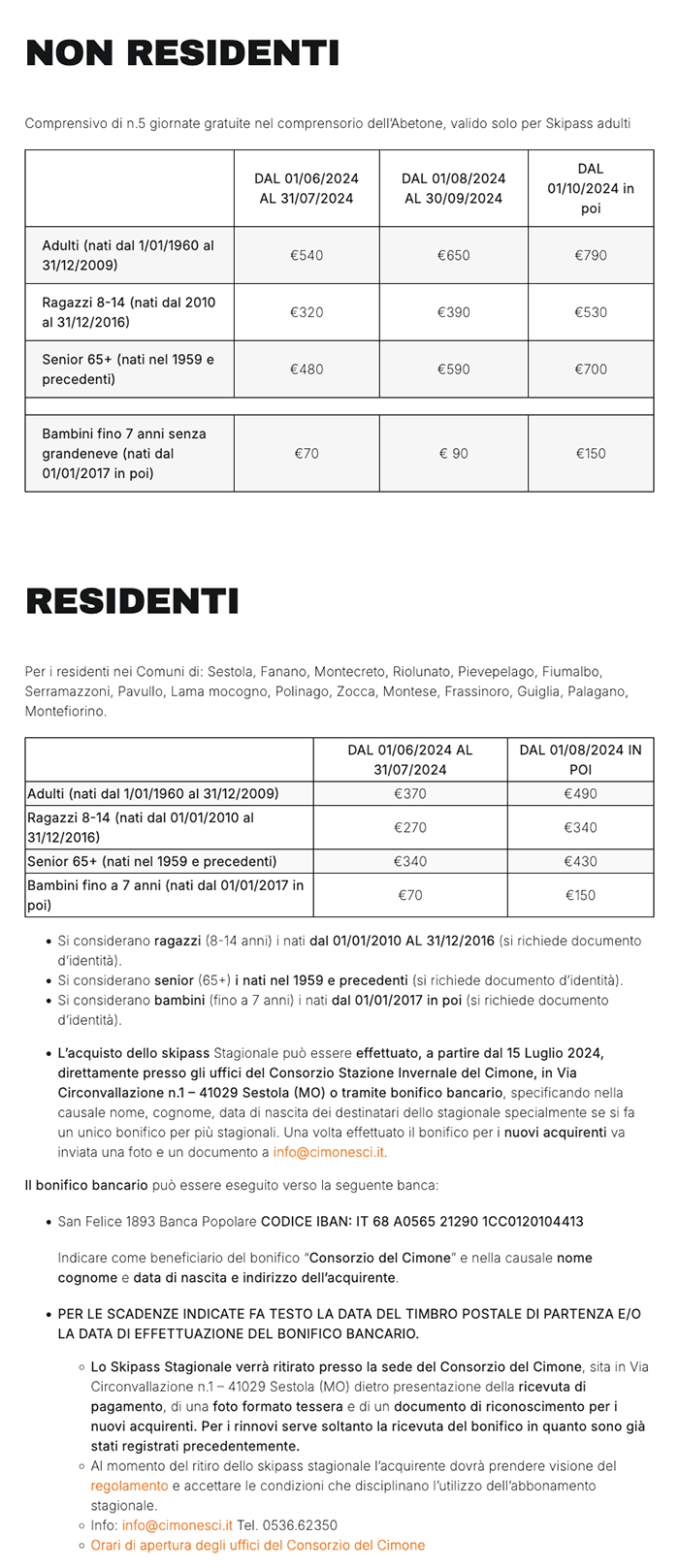Skipass Cimone FESTIVI 2024/2025