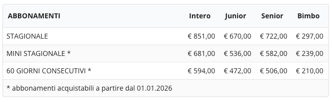 Pluri-giornaliero Alta Stagione Madesimo 2025/2026