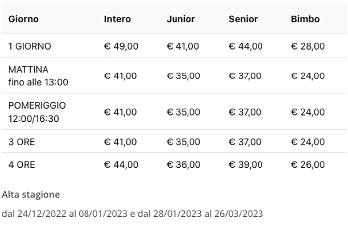 Skipass Giornalieri Alta Stagione Madesimo 2022/2023