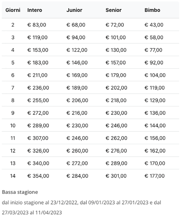 Skipass Pluri-giornalieri Bassa Stagione Madesimo 2022/2023