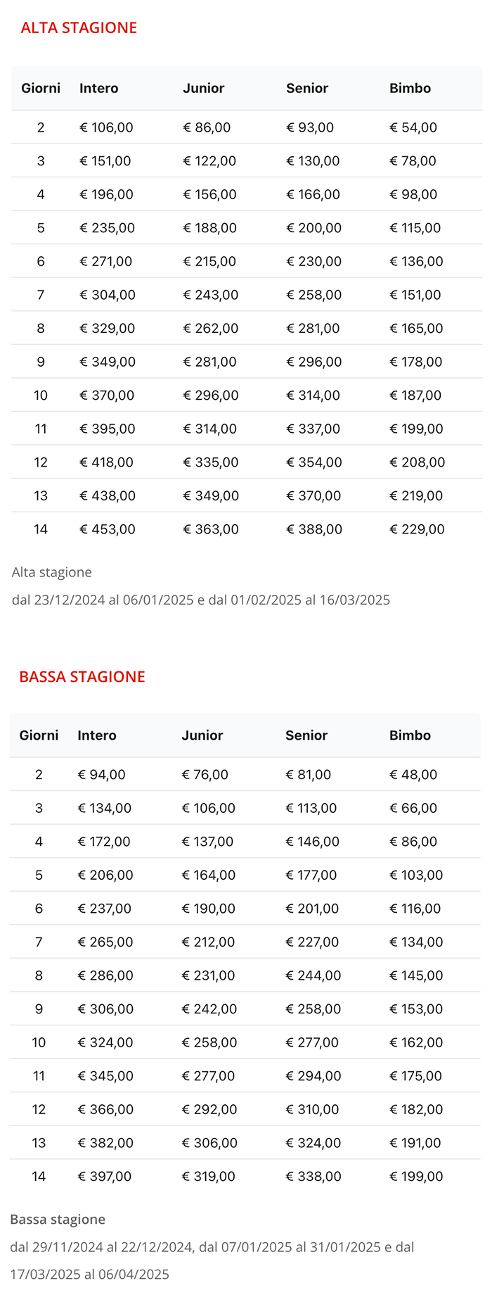 Skipass Plurigiornalieri Madesimo Valchiavenna 2024/2025