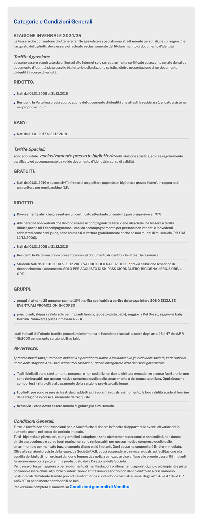 Skipass Bassa Stagione Valmalenco 2024/2025