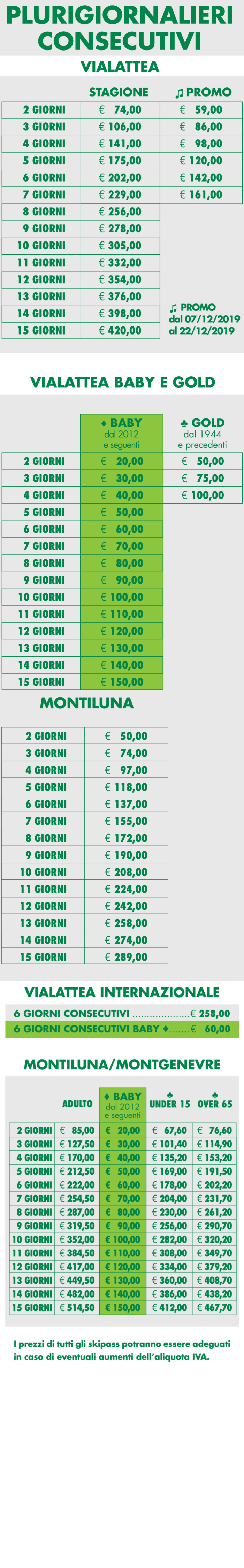 Skipass più giorni ViaLattea, Sestriere, Sause dOlux, Claviere 2019/2020