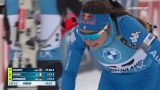 Tiril Eckhoff si presenta all'ultimo poligono con due errori di vantaggio sulle più immediate inseguitrici e li sciupa sbagliando il primo e l'ultimo bersaglio ma sbaglia una volta anche Herrmann e due volte Chevalier. Non sbaglia Dorothea Wierer che esce dalla sessione in seconda posizione a 14 secondi con 8 di vantaggio su Hermann.
